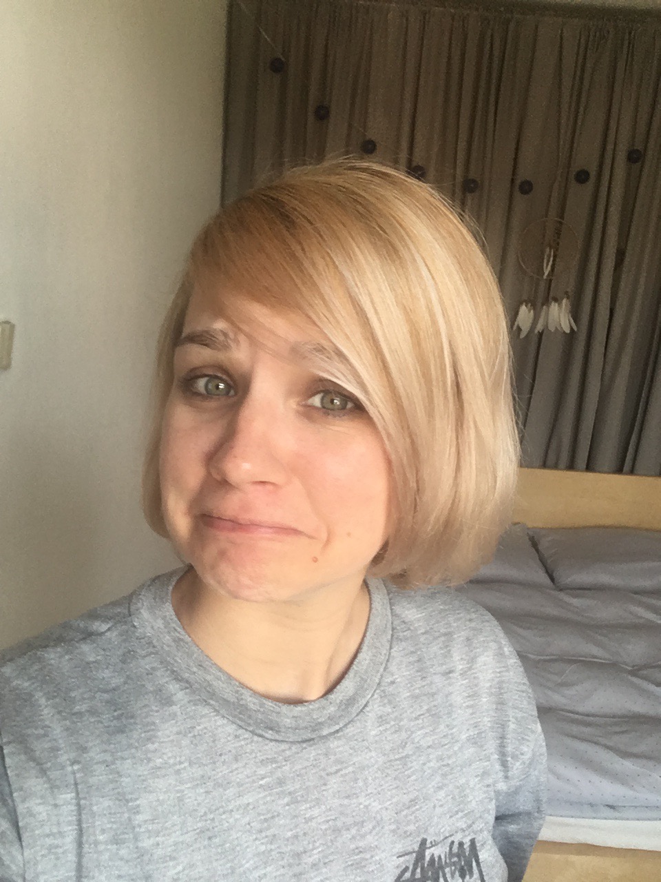 Před otěhotněním jsem si nechala zesvětlit vlasy kombinovanou technikou (melíry a balayage). Na začátku druhého trimestru jsem se rozhodla vlasy po čtyřech měsících opět nechat promelírovat. I když kadeřnice použila stejný melírovací prášek a vyvíječ jako obvykle, výsledek byl děsně oranžový. Jako člověk z oboru jsem ale věděla, že výsledky barvení v těhotenství jsou nejisté kvůli hormonálním změnám v těle. Každá žena má samozřejmě jinou reakci. Já jsem se i přesto rozhodla to riziko podstoupit, ale nevyplatilo se mi to. Vinit kadeřnici by bylo naprosto neoprávněné, ale myslím si, že každá kadeřnice by vás správně měla upozornit na rizika, které s sebou barvení v těhotenství přináší. Proto radím všem, kteří si zakládají na svém účesu, aby raději před těhotenstvím zvolili barvu nebo techniku zesvětlovaní, která nevyžaduje tak časté obnovování jako právě hustý melír, který jsem měla já. Nejlepší je samozřejmě ponechat přirozený odstín, popřípadě velmi podobnou barvu vaší přirozené, anebo jemnou balayage.